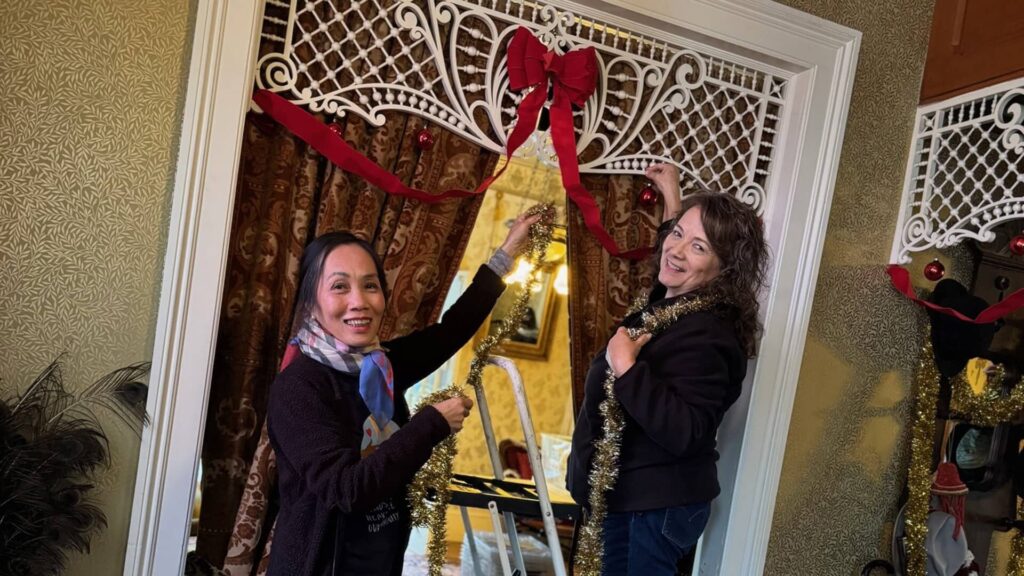 The Harris-Lass House Museum, located at 1889 Market Street in Santa Clara, is the city’s last remaining farm site and reflects 125 years of life shared by the Harris and Lass families. Built in 1865 in the Italianate style and enlarged in the 1890s, the home now showcases original Lass family furnishings and sits alongside a classic barn, summer kitchen, tank house, landscaped gardens, and a Heritage Orchard. Purchased by the City of Santa Clara in 1987 and opened to the public in 1991 after extensive restoration, the museum is operated by the nonprofit Historic Preservation Society of Santa Clara and run entirely by volunteers. Recently, six Mission City Federal Credit Union staff members donated their time to help decorate the museum on November 20, 2025.